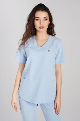 Krótka bluza medyczna damska Florence - Ocean blue - KangooSoft