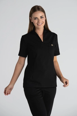 Elegancka bluza medyczna damska ze stójką May - Ink black - Kangoomed by Emily