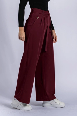 Spodnie medyczne damskie z szeroką nogawką - Lucy - Cranberry - KangooSoft Premium