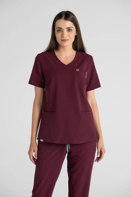 Bluza medyczna damska Merit - Cranberry - KangooSoft Premium