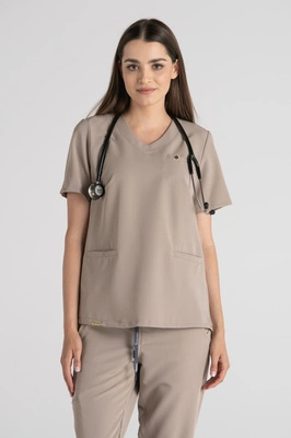 Bluza medyczna damska Merit - Perfect beige - KangooSoft Premium